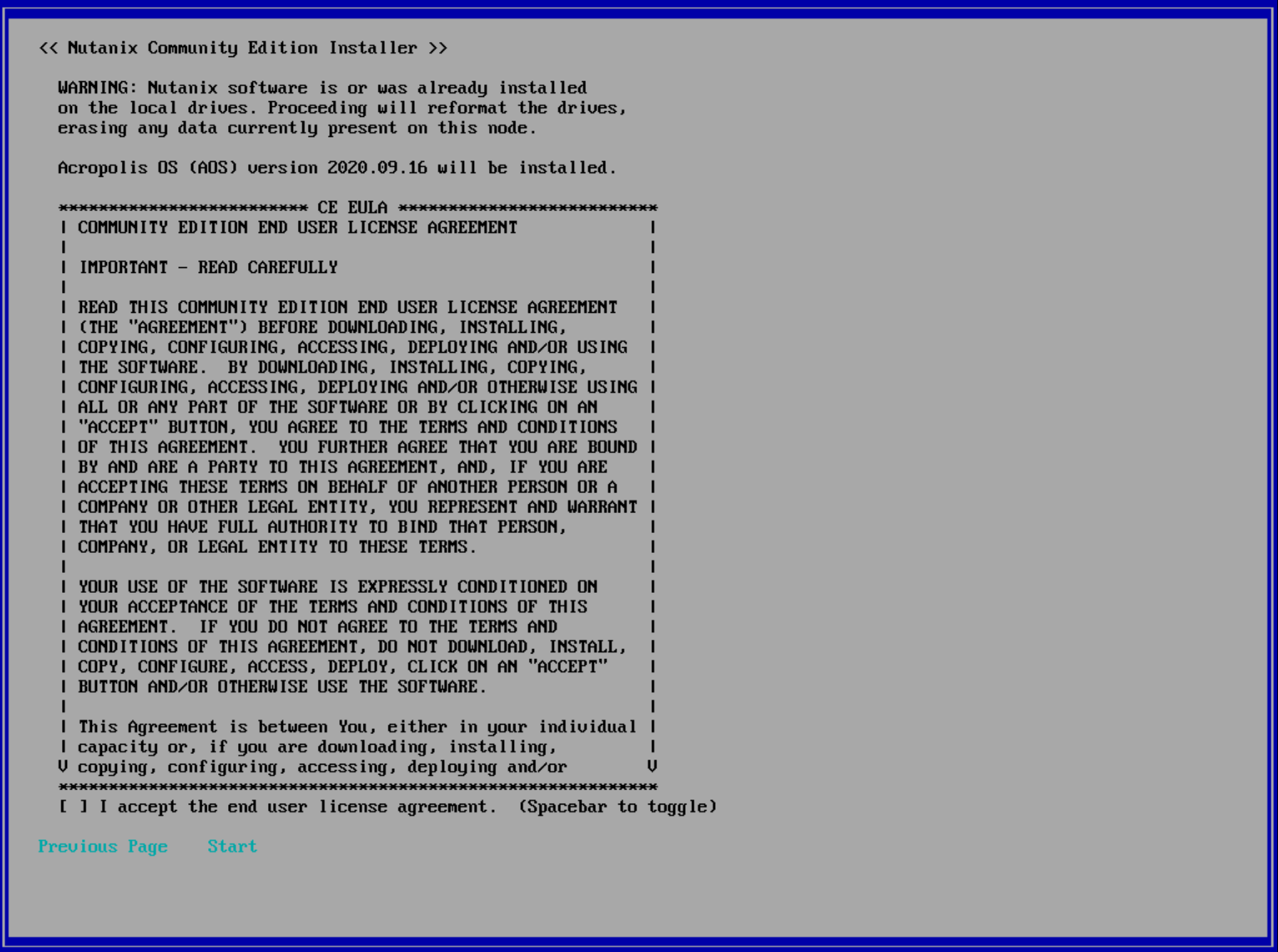 On the next screen you’ll use the Scroll Down key to get to the bottom of the EULA, accept it, then the installation should kick off.