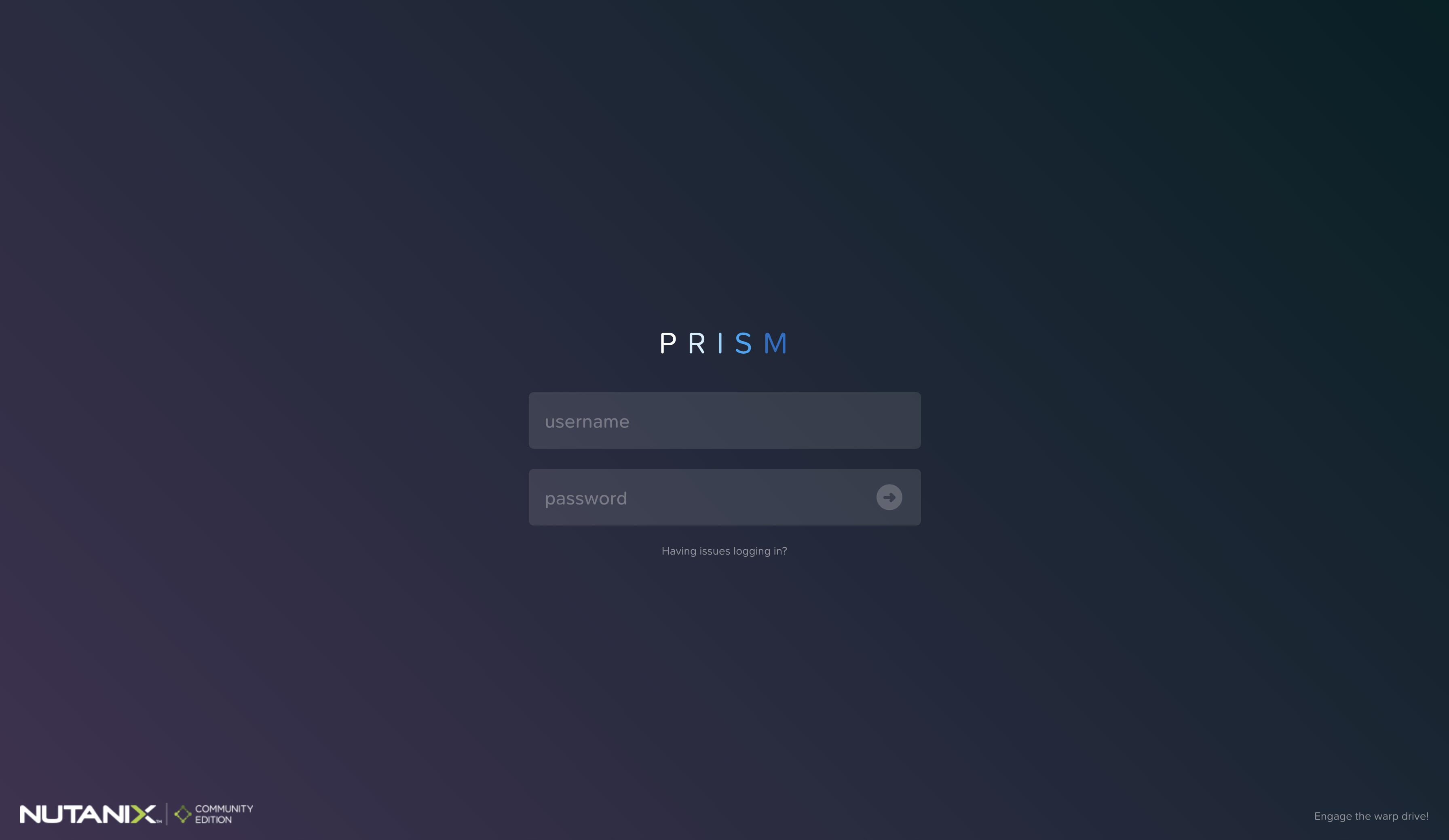 It looks exactly the same as the Prism Element log in, there’s nothing that distinguishes them individually - the default Prism Central credentials are admin / Nutanix/4u, noting the capital N in the password now.