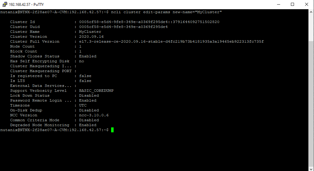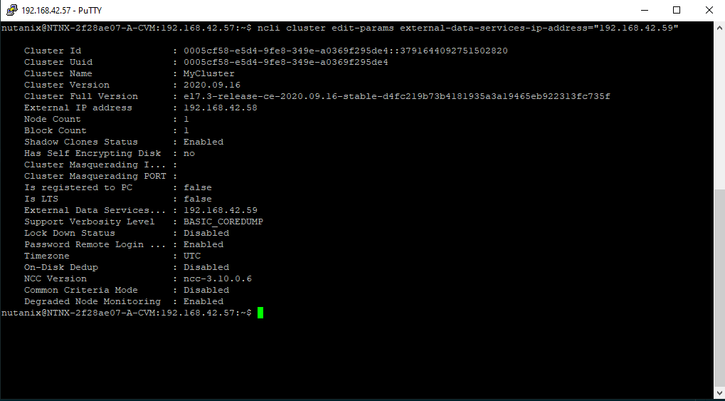 | Cluster VIP | ahv-mycluster | 192.168.42.58 | 255.255.255.0 | 192.168.42.1 |