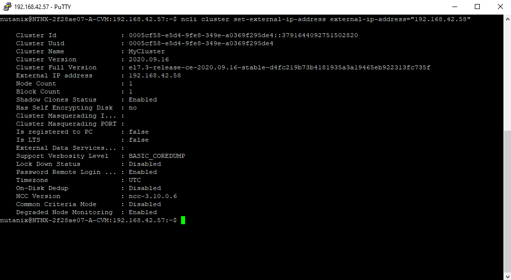 ncli cluster set-external-ip-address external-ip-address="192.168.42.58"
