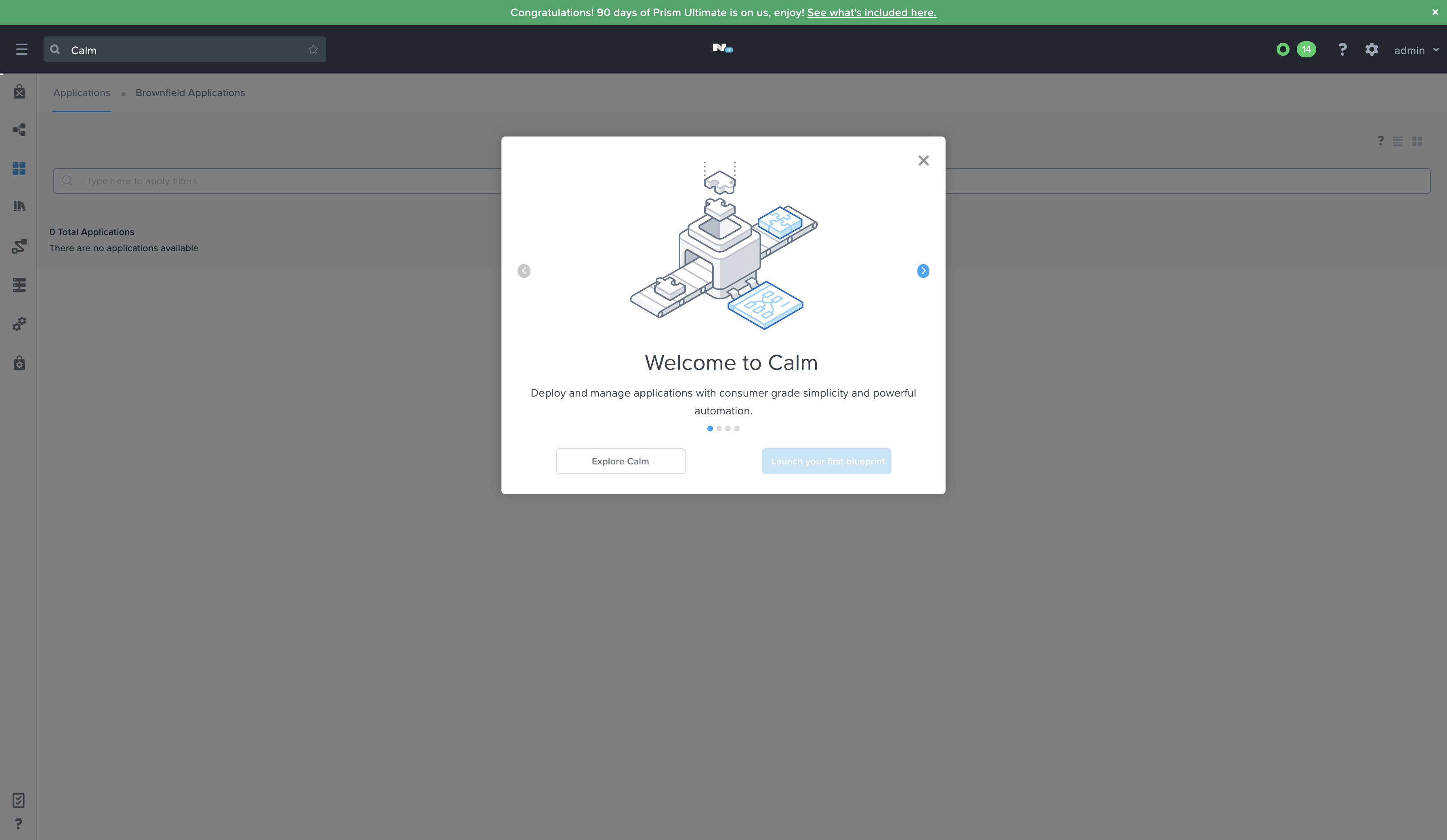 Click the “Enable App Orchestration (Calm)" button - check the boxes and click “Save” - wait for a few minutes while the Calm service deploys.