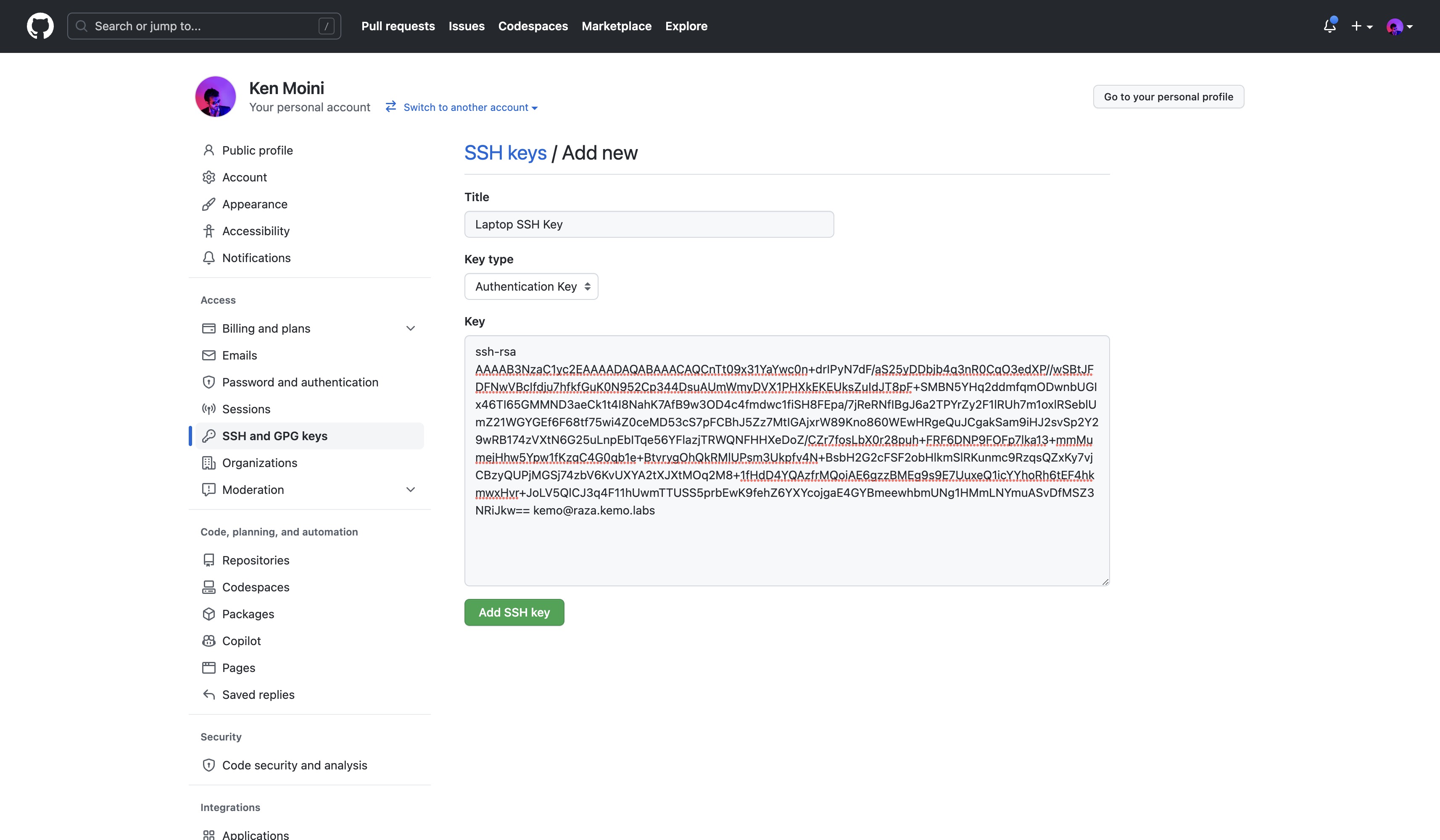 Adding the SSH Public Key to your GitHub Account